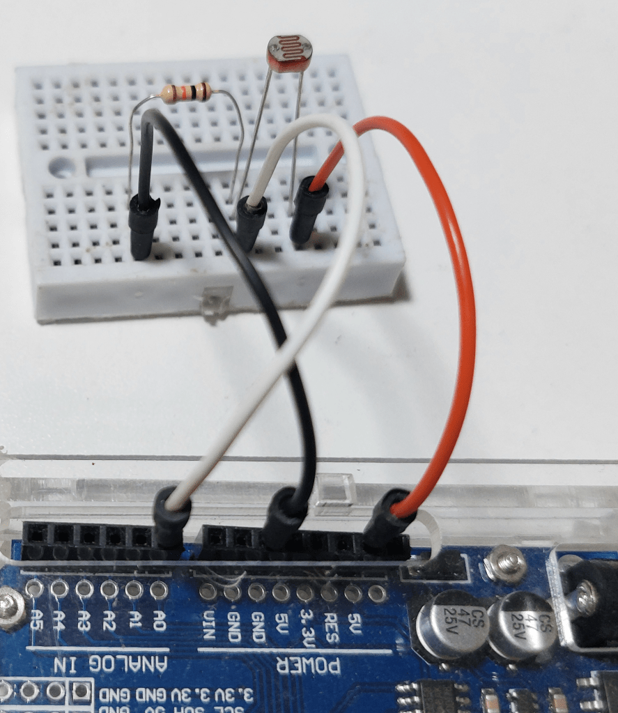 Na montagem, vamos ler a intensidade de luz que incide sobre o LDR através do pino A0 do Arduino.