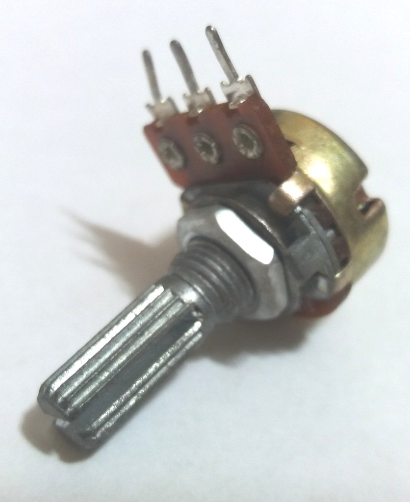 É o famoso botão de volume que encontramos em diversos aparelhos. Conforme giramos o cursor a resistẽncia diminui ou aumenta de maneira proporcional.