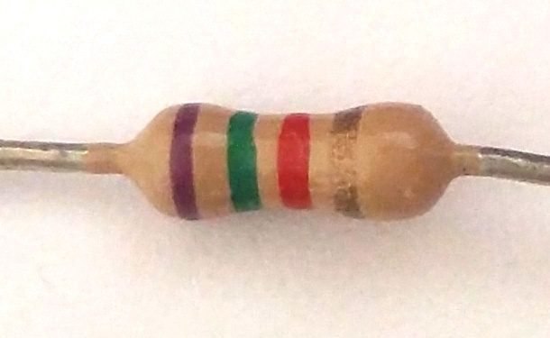 valor: 1500 Ω (a faixa vermelha indica dois zeros)